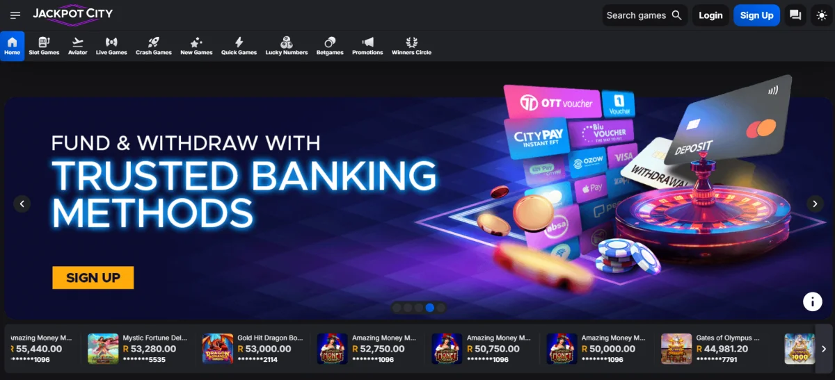 To play at Jackpot City SA online casino, simply register an account on their website, verify your identity, and make your first deposit using one of the available payment methods. Once your account is funded, you can browse through hundreds of slots, table games, and live dealer options, selecting your preferred game to start playing immediately for real money.